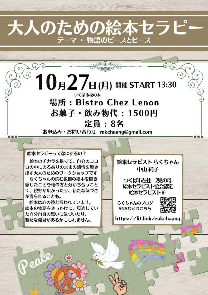 10月29日(水)つくば市民センターコリドイオで、同内容の絵本セラピーを開催いたします